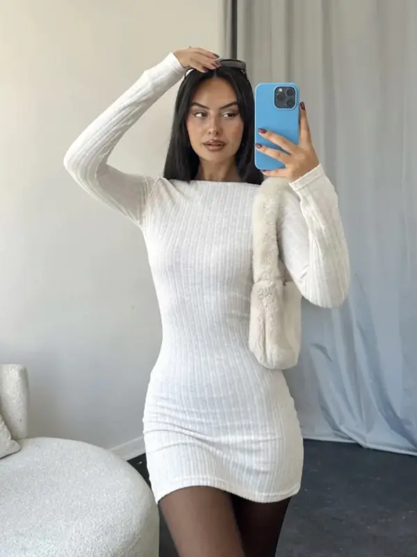 Mini rebrasta haljina sa otvorenim leđima. Jako kratka – preporučujemo pogledajte dimenzije prije kupovine.