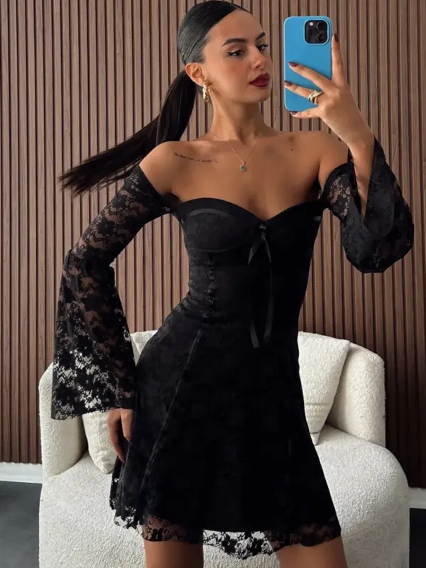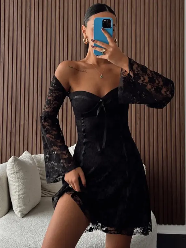 Ova ultra kratka mini haljina korzet stila unosi dašak retro elegancije u moderni dizajn. Dvoslojna konstrukcija s čipkom preko i spužvicama na grudima osigurava sofisticiran izgled i dodatnu podršku. Rubovi nisu obrađeni, što pridonosi ležernom šarmu. S malom količinom elastina, haljina prati liniju tijela, dok se zbog manjeg modela preporučuje uzeti veću veličinu od uobičajene.
