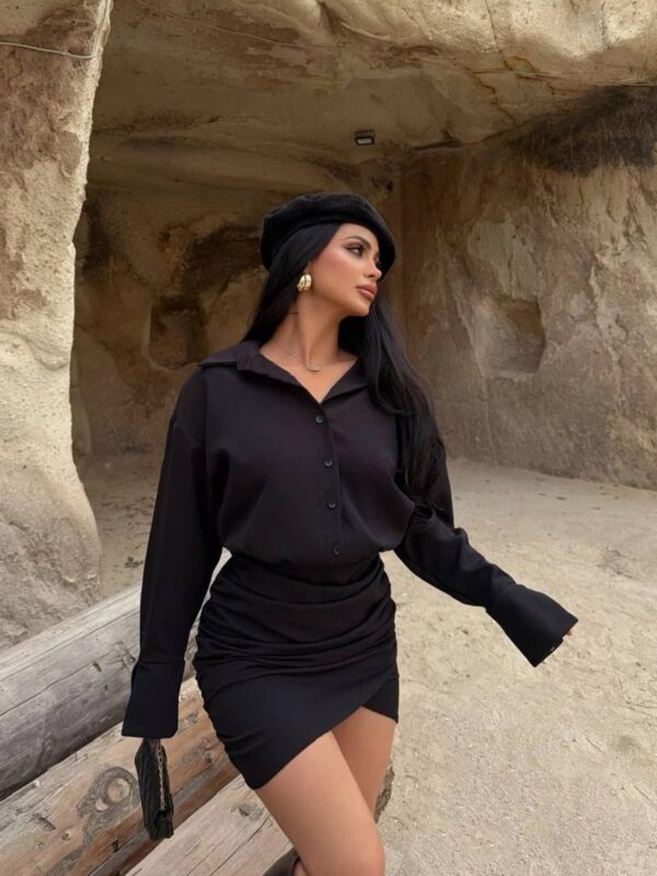 Moderna i ženstvena verzija klasične košulje — ova mini haljina savršeno spaja ležernost i eleganciju, čineći je idealnim izborom za dan i večer.