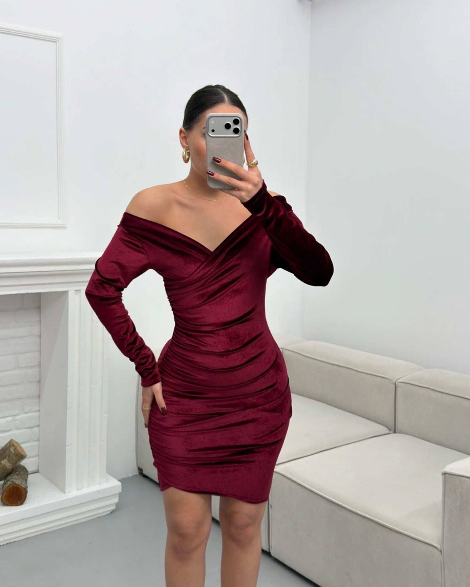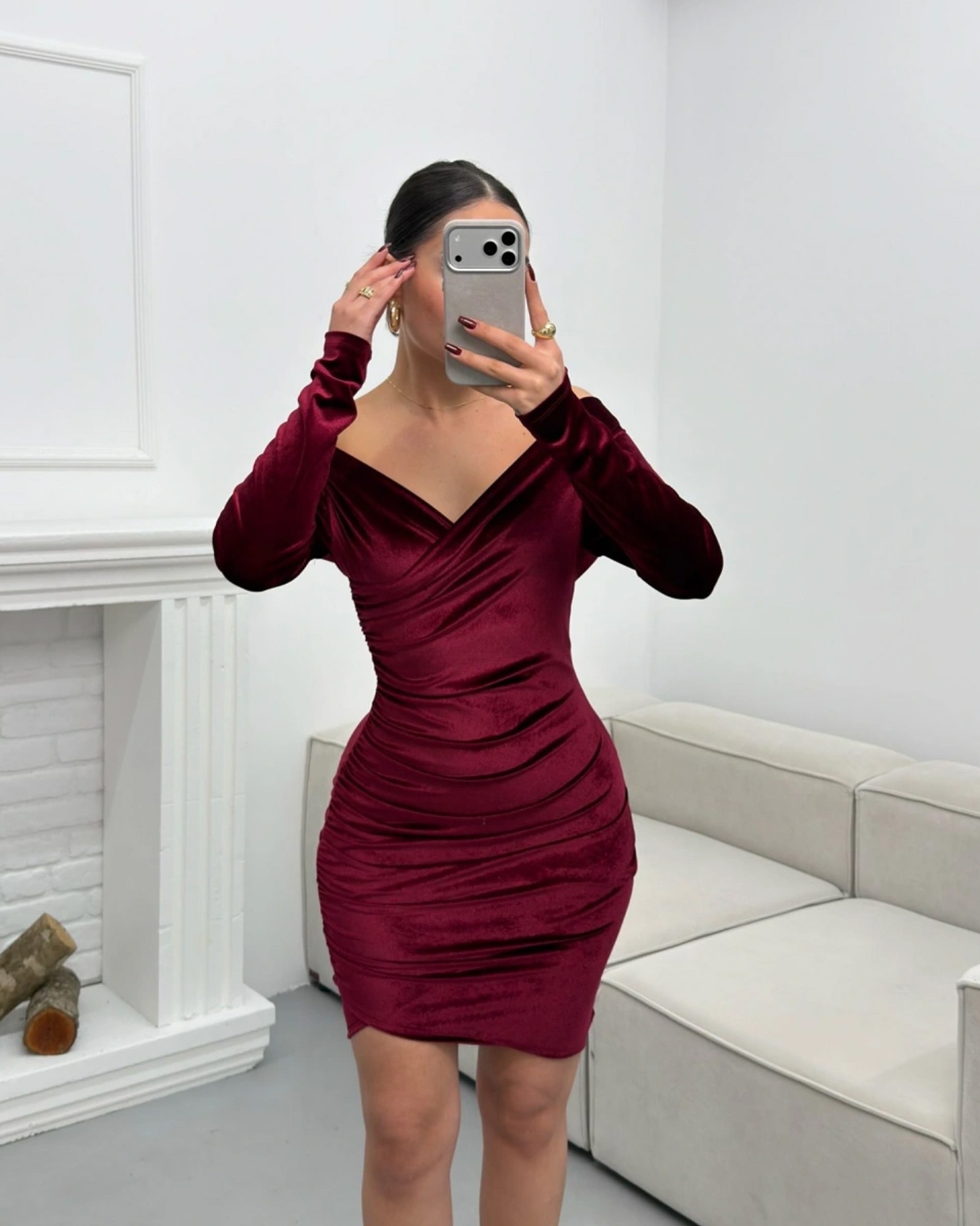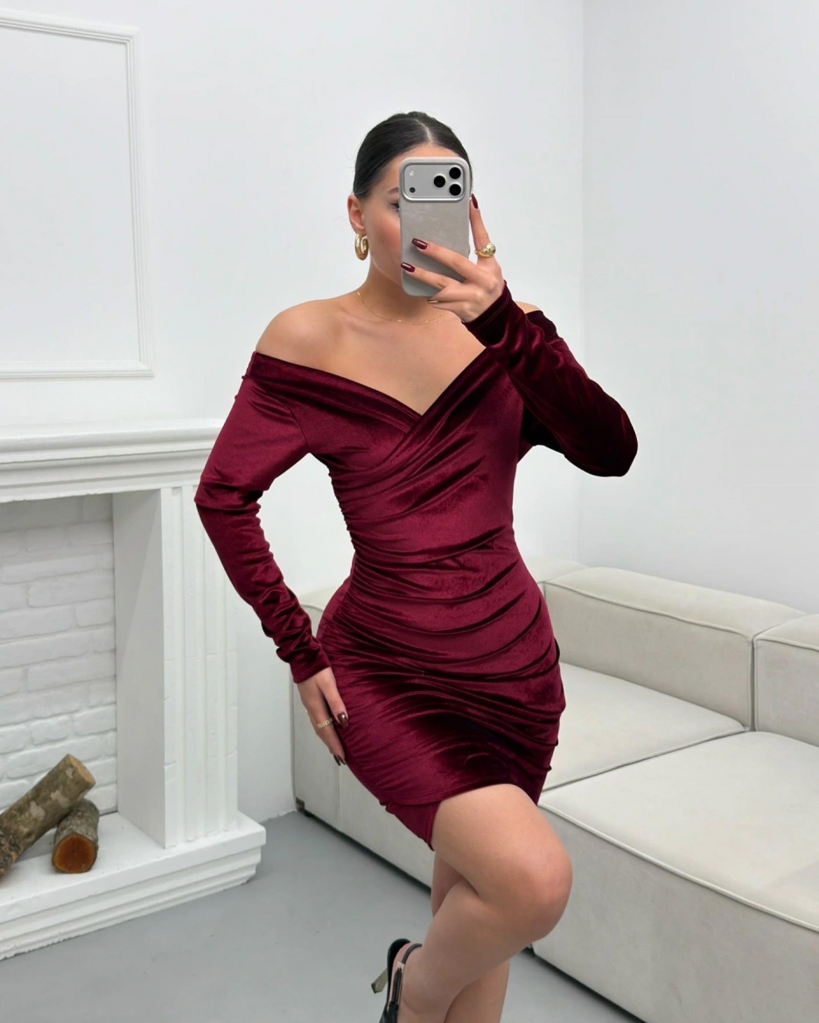 👗 Baršunasta mini haljina s nabranim detaljima – elegantna i zavodljiva