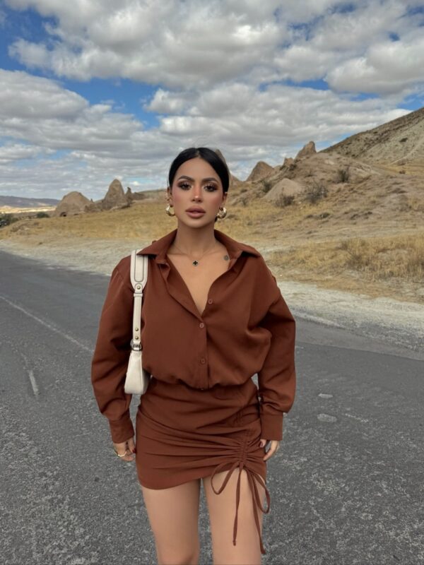 Moderna i ženstvena verzija klasične košulje — ova mini haljina savršeno spaja ležernost i eleganciju, čineći je idealnim izborom za dan i večer.