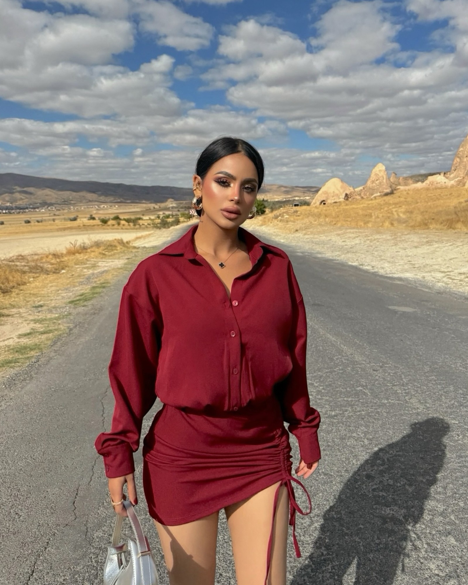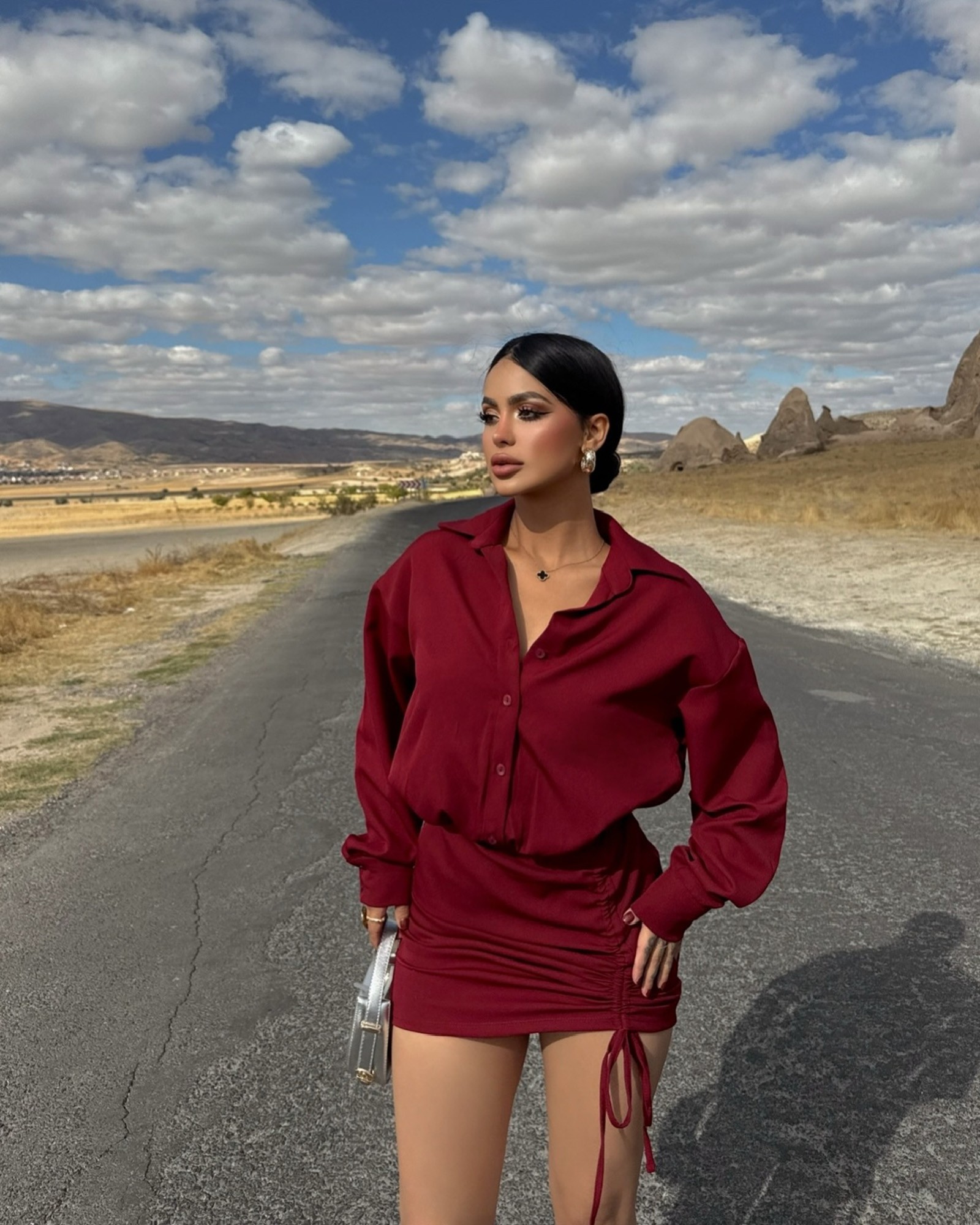 Moderna i ženstvena verzija klasične košulje — ova mini haljina savršeno spaja ležernost i eleganciju, čineći je idealnim izborom za dan i večer.