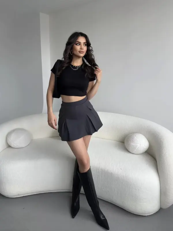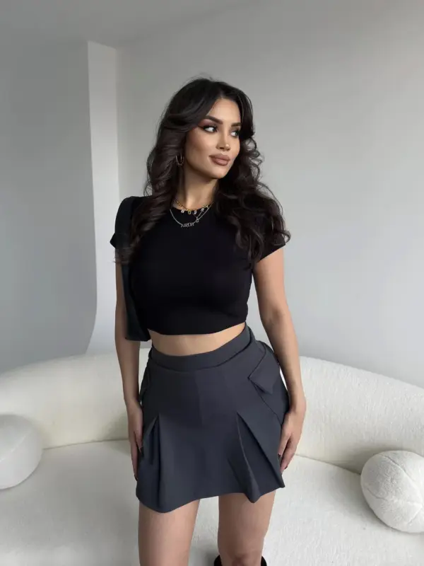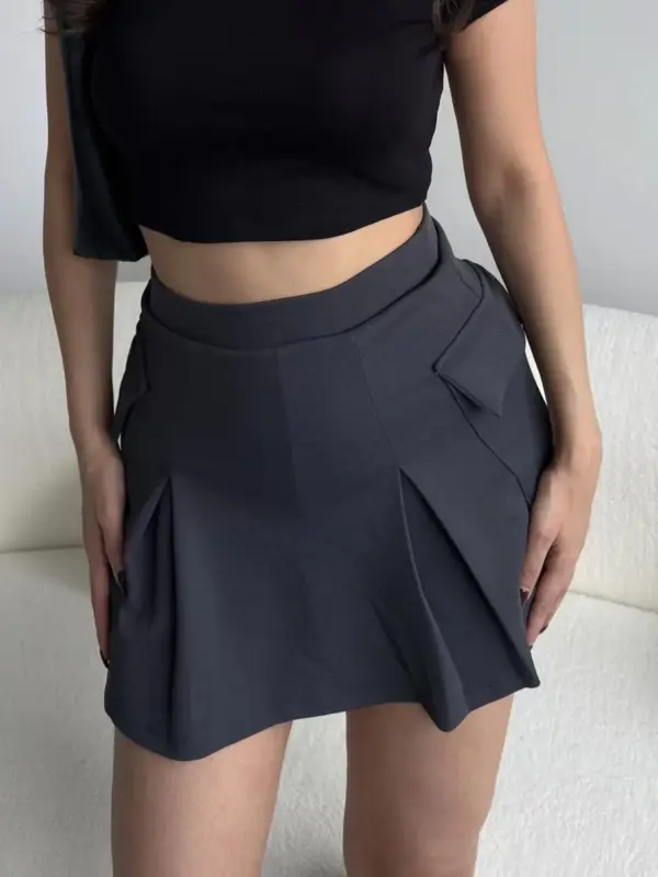 Ova trendi mini suknja s ugrađenim skrivenim šorcem pruža ti maksimalnu slobodu kretanja i udobnost. Guma u struku osigurava savršeno pristajanje, dok praktični džepovi sa strane dodaju ležeran, ali moderan izgled. Idealna za svakodnevne outfite i stylish kombinacije!