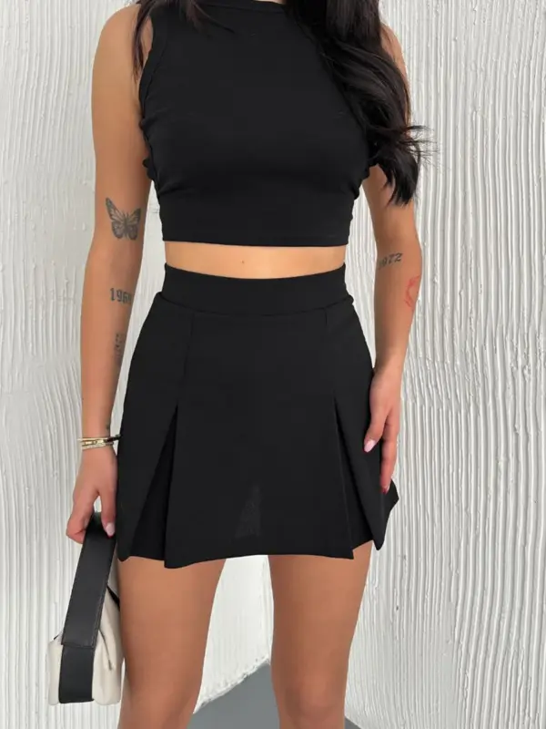 Mini suknja s prednjim izrezima i skrivenim šorcem 💫