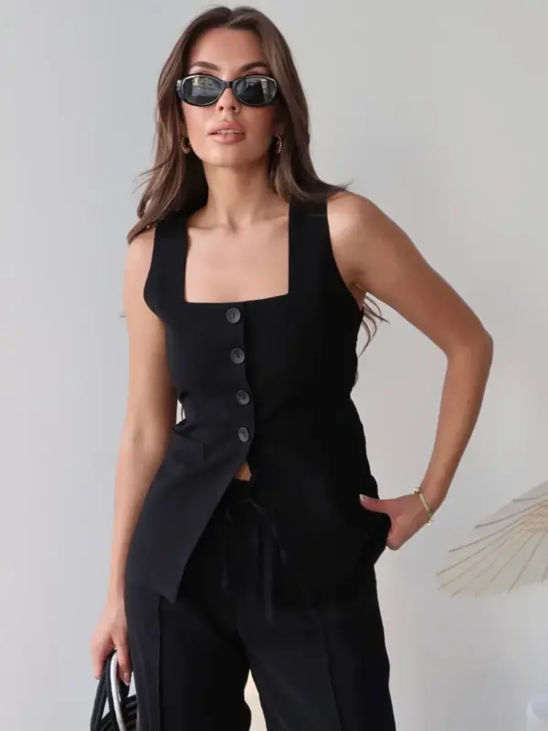 Prsluk se veže pozadi i kopča na dugmad, također je u potpunosti podstavljen.