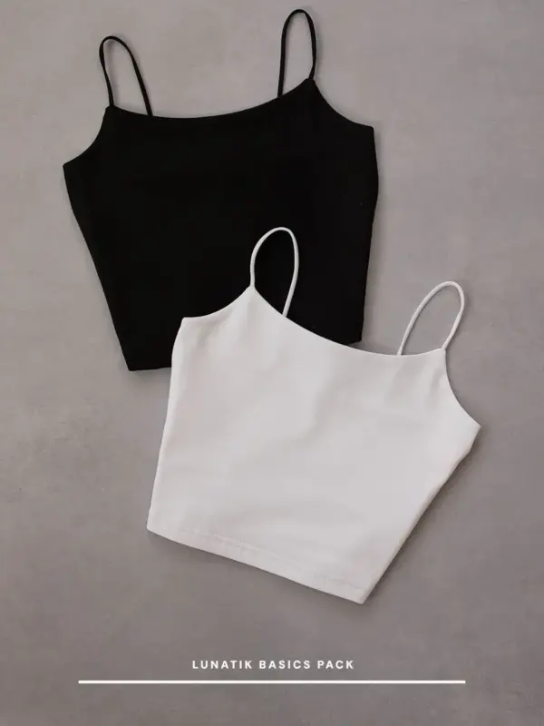 Bezvremenski, udobni i savršeno praktični – ovaj paket sadrži dva osnovna topa koje ćeš nositi iznova i iznova. Jedan u klasičnoj crnoj, drugi u svježoj bijeloj boji, sa tankim naramenicama i ravnim izrezom koji lijepo pristaje uz svaki tip građe. Prednji dio je diskretno podstavljen radi veće udobnosti i sigurnosti, dok blago rastezljivi pamuk pruža osjećaj slobode i mekoće.