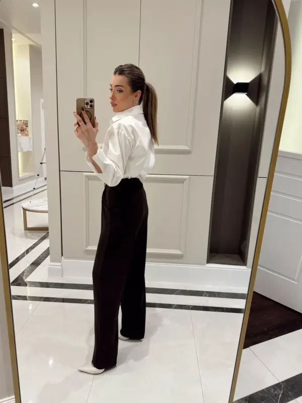 🔹 Kroj: Visoki struk, široke nogavice (palazzo fit)