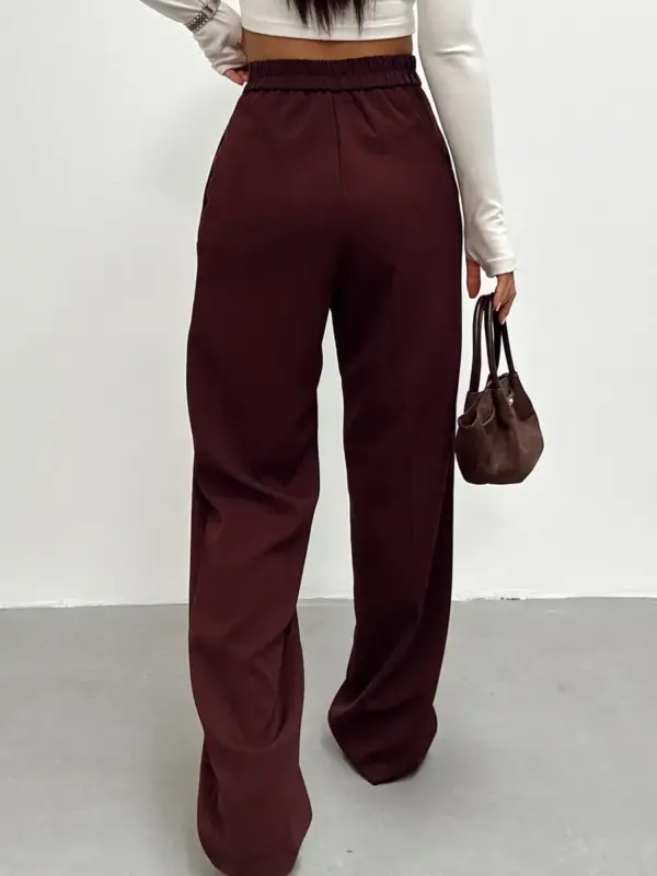 Klasične i elegantne palazzo hlače koje pružaju sofisticiran i izdužen izgled. Visoki struk ističe figuru i vizuelno produžava noge, guma omogućava savršeno pristajanje, dok široke nogavice doprinose lepršavosti i udobnosti. Idealne su za kombinovanje uz crop topove, košulje ili sako za formalniji izgled.