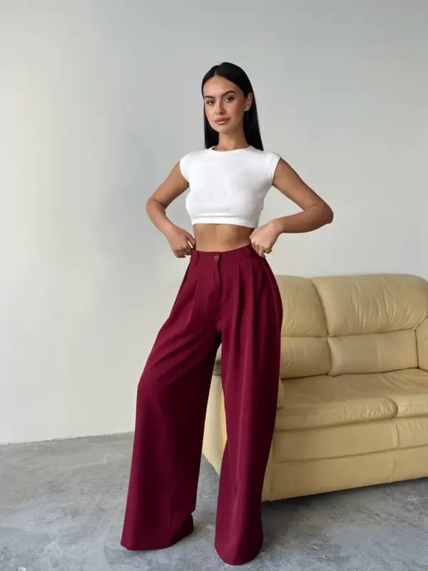 🔹 Kroj: Hlače visokog struka, široke nogavice