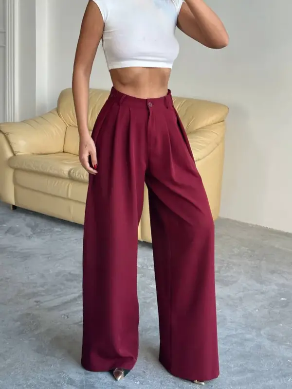 Unesite stil u svoju garderobu s ovim predivnim hlačama širokih nogavica! Visoki struk i lepršavi kroj čine ih izuzetno modernim i udobnim. Široke nogavice pružaju slobodu pokreta i stvaraju elegantnu siluetu.