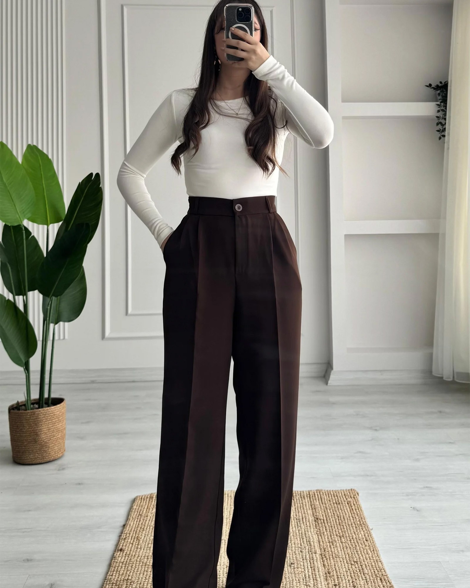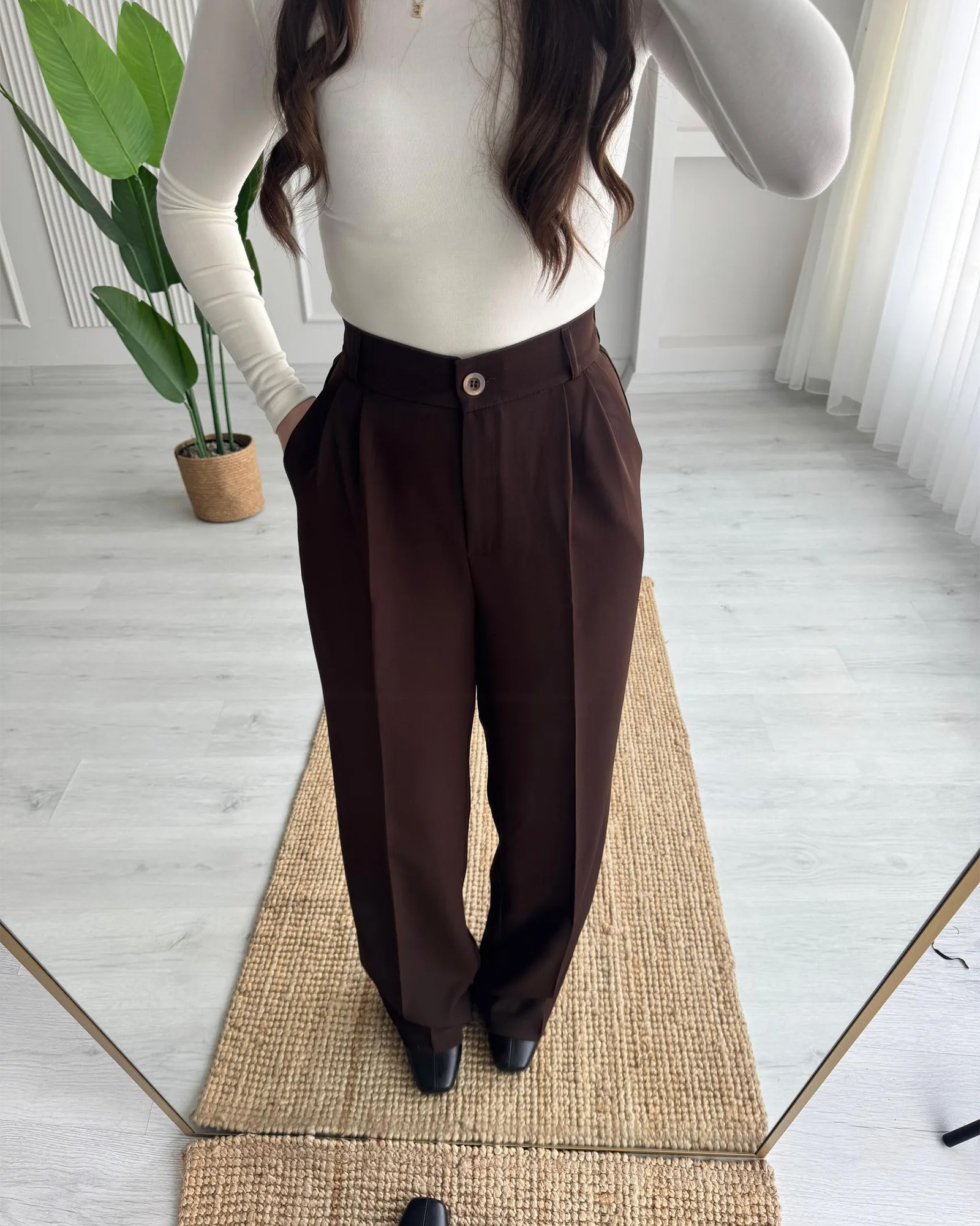 Klasične i elegantne palazzo hlače koje pružaju sofisticiran i izdužen izgled. Visoki struk ističe figuru i vizuelno produžava noge, guma omogućava savršeno pristajanje, dok široke nogavice doprinose lepršavosti i udobnosti. Idealne su za kombinovanje uz crop topove, košulje ili sako za formalniji izgled.