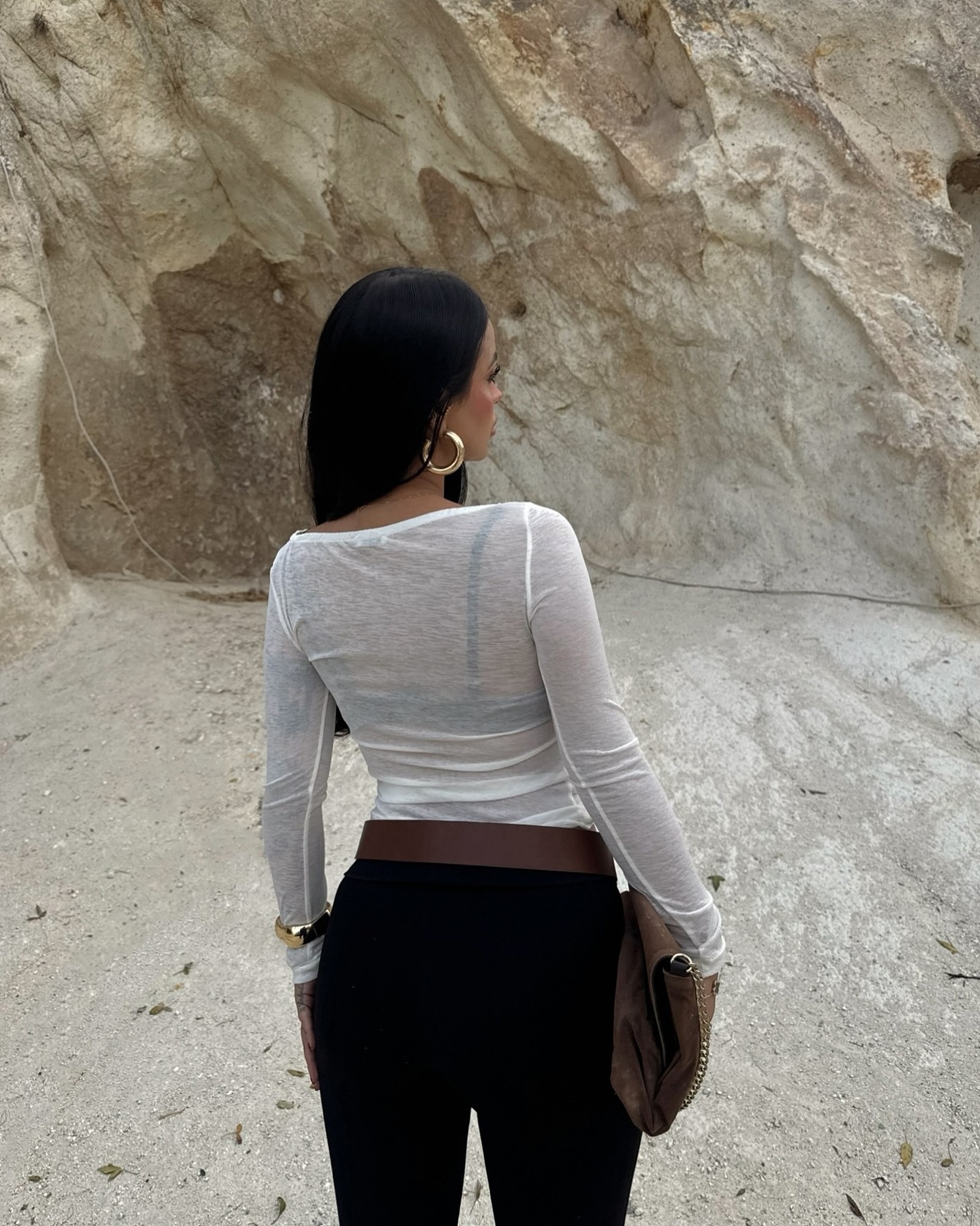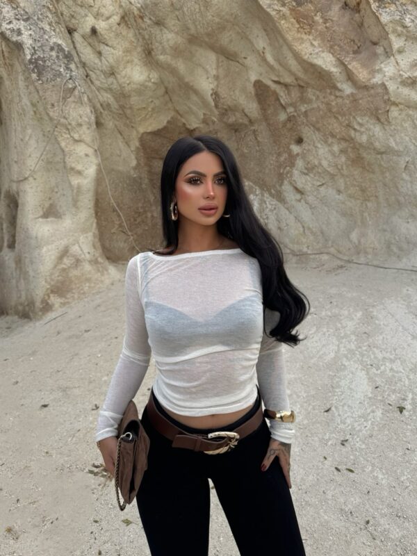 Moderna i elegantna majica koja se savršeno uklapa u slojevite outfite. Zahvaljujući prozirnom materijalu, pruža ženstven i sofisticiran izgled koji se lako prilagođava svakoj prilici.
