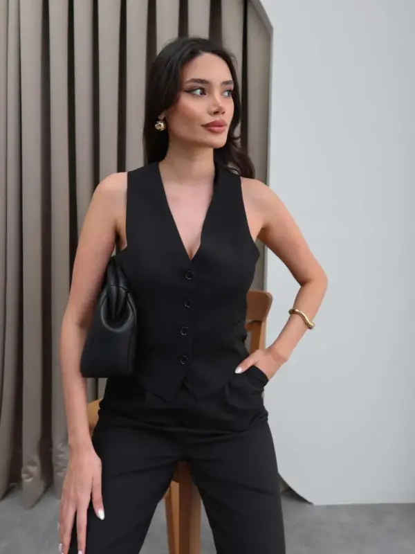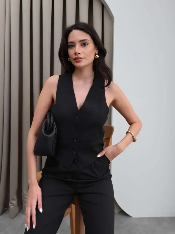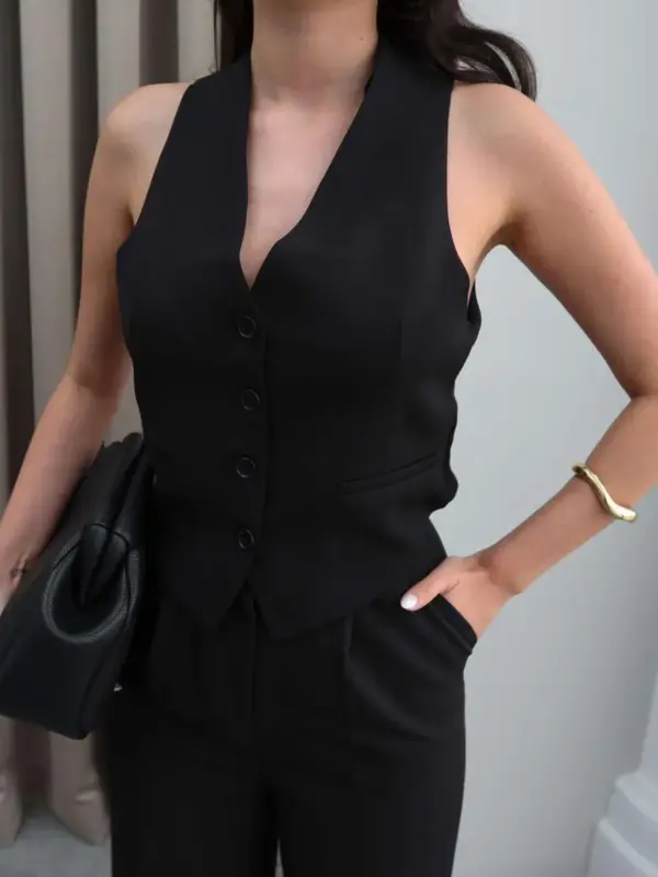 Izrađen od kvalitetnog materijala, ovaj prsluk je idealan za poslovne prilike ili casual kombinacije. Nosite ga samostalno ili preko basic topova i košulja. Lako se kombinuje s hlačama i suknjama visokog struka.