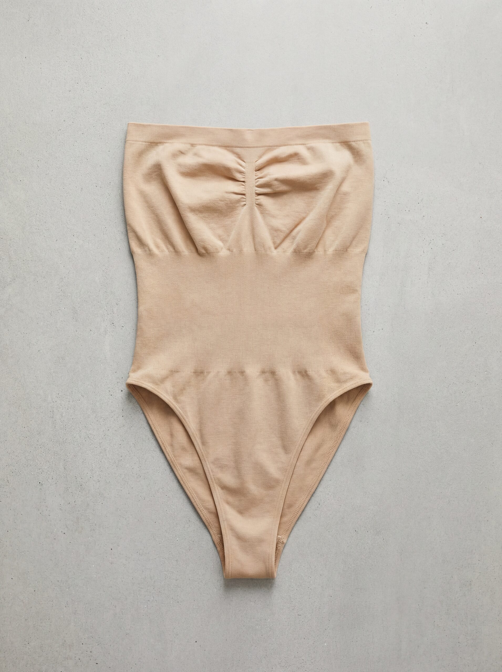 Ovaj strapless shapewear body dizajniran je za maksimalnu podršku i savršeno oblikovanje figure, uz potpuno čist i neprimjetan izgled ispod odjeće. Zahvaljujući visokom struku i ciljanoj kompresiji, pruža efikasnu kontrolu stomaka, sužava struk i zaglađuje siluetu, dok nema umetke u predjelu grudi, omogućavajući prirodan osjećaj i fleksibilno stilizovanje.