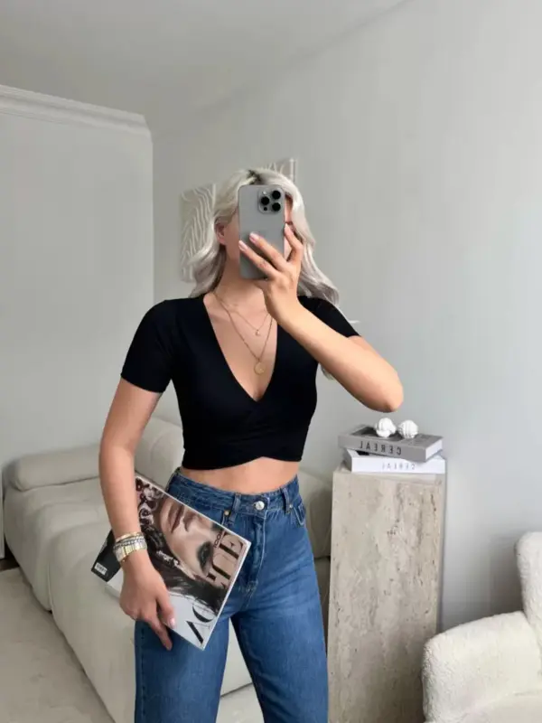 ✨ Trendi crop top na preklop s V-izrezom ✨