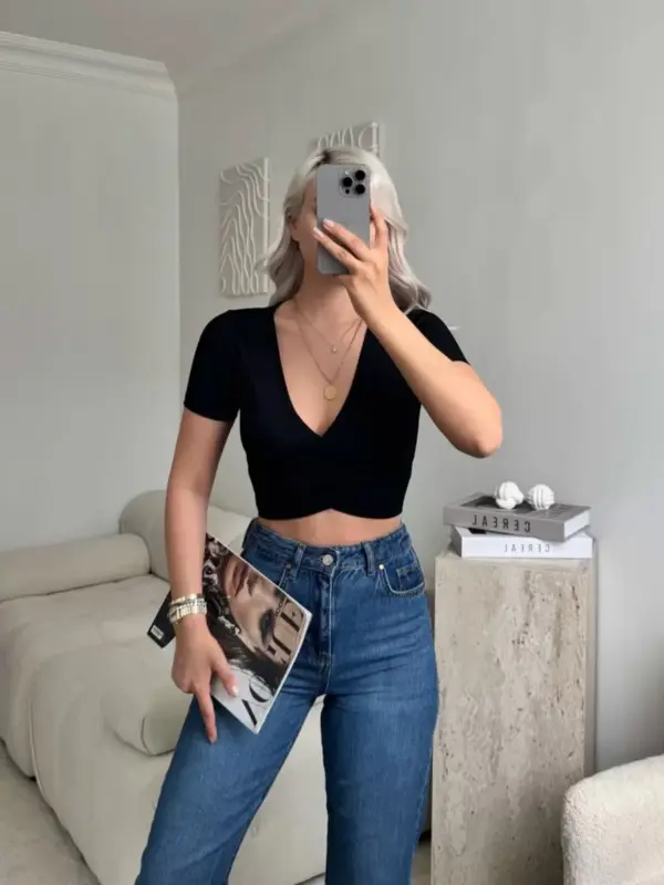 ✨ Trendi crop top na preklop s V-izrezom ✨