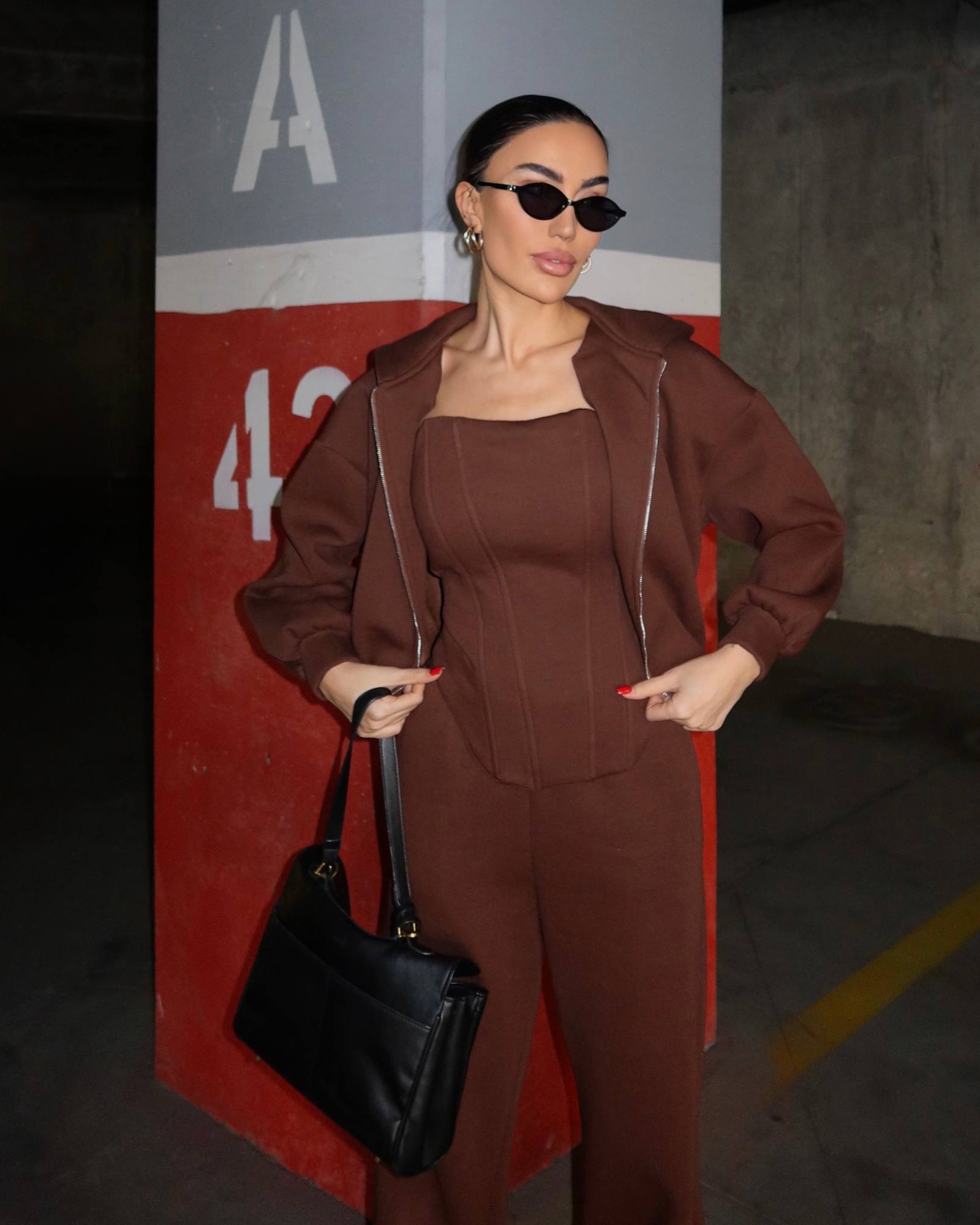 Ovaj komplet spaja toplinu, udobnost i moderan dizajn u jednom outfitu. Idealan je za svaki dan, ali i za stylish casual kombinacije koje privlače pažnju.